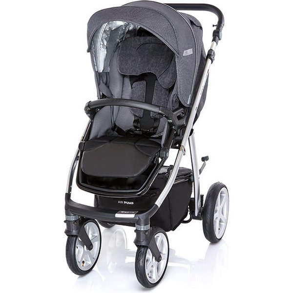 Wszechstronna regulacja pozwala na idealne dopasowanie poszczególnych elementów do potrzeb dziecka. Duże pompowane koła oraz amortyzacja gwarantuje płynność jazdy nawet po nierównym terenie. Zwrotność kół pozwala na łatwe manewrowanie wózkiem oraz lekkość prowadzenia. Wózek posiada pojemny kosz na zakupy zapinany na zamek błyskawiczny oraz torbę, w której znajduje się praktyczny przewijak.