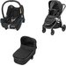 Możliwość stworzenia bardzo praktycznego rozwiązania 3w1, które pozwoli na zastosowanie wózka przez dłuższy czas. W pierwszych miesiącach życia dziecka na stelażu wózka montuje się gondolę Oria Maxi-Cosi, która będzie odpowiednia do przewożenia dzieci od pierwszych chwil życia do około 6 miesięcy (10kg). Następie na stelażu montuje się siedzisko spacerowe, które będzie służyć dziecku do 6 miesięcy do około 3,5 lat (do 15 kg). Istnieje możliwość zamontowania fotelika z grupy 0+ Maxi Cosi (do zakupu osobno).