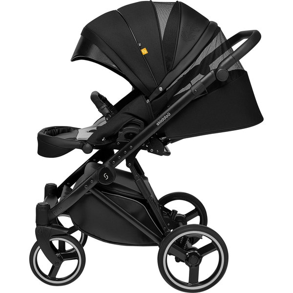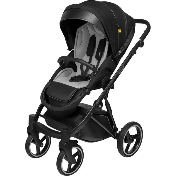 Spacerówka posiada możliwość montażu zarówno przodem, jak i tyłem do kierunku jazdy. Rotacyjny pałąk, otwierany z obu stron ułatwi posadzenie dorastającego dziecka, a przedłużana budka dobrze ochroni dziecko przed niekorzystnymi warunkami atmosferycznymi. Oparcie spacerówki posiada regulację 4-stopnią, co umożliwia komfortową drzemkę nawet w pozycji całkowicie leżącej. Podnóżek wózka o 5-stopniowej regulacji jest obszyty skórą ekologiczną, co znacznie ułatwia utrzymanie go w czystości.