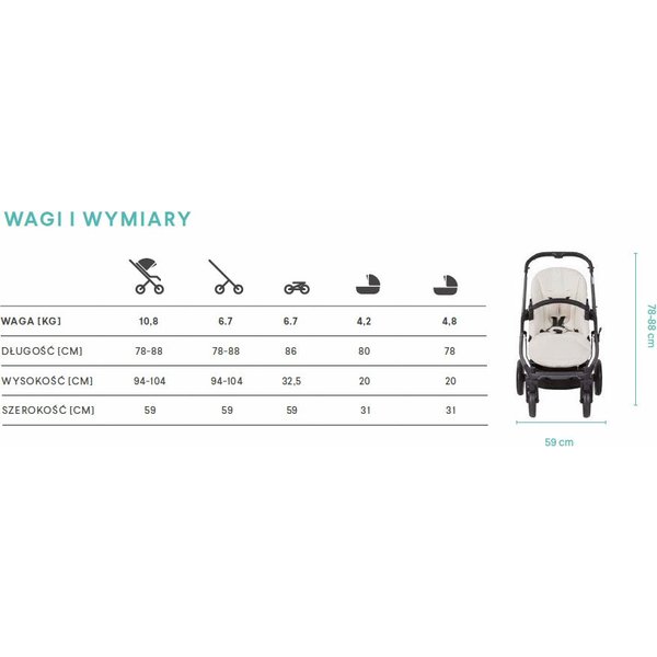 - ulepsz swój wózek dodatkowymi gadżetami! (do zakupienia osobno): torba, śpiworek, mufka, dostawka, wkładka redukcyjna, uchwyt na kubek, folia przeciwdeszczowa