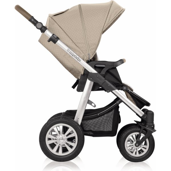 W pierwszym etapie używany może być z gondolą dla noworodków, następnie gondolę można zamienić na spacerówkę. Wózek posiada również możliwość montażu fotelika samochodowego na stelażu wózka. Za pomocą adapterów można zamontować nosidełko Leo, Dumbo L marki Baby Design, Neo M od Espiro bądź Maxi Cosi Cabrio Fix (nosidełko i adaptery są opcją, do zakupienia osobno).