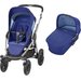 - siedzisko spacerowe w kolorze river blue (niebieski) wyposażone w pelerynkę przeciwdeszczową, koszyk na zakupy, klip do parasolki oraz adaptery do montażu fotelika samochodowego oraz do montażu gondoli Maxi-Cosi