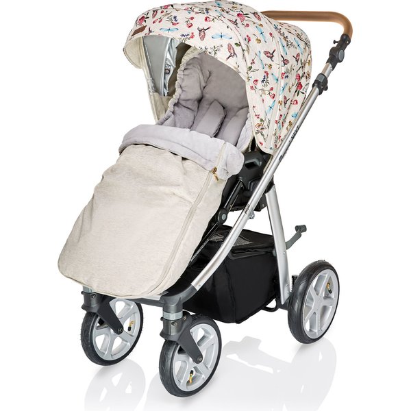 - bogato wyposażona w dodatkowe akcesoria: torba zawieszana na rączce wózka z przewijakiem, ciepłe okrycie i folia przeciwdeszczowa na gondolę, Baby Shell (pokrowiec na nóżki/śpiworek) do spacerówki
