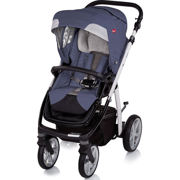 • bogato wyposażona w dodatkowe akcesoria: torba zawieszana na rączce wózka z przewijakiem oraz termokieszenią na butelkę, ciepłe okrycie i folia przeciwdeszczowa, pokrowiec na nóżki do spacerówki