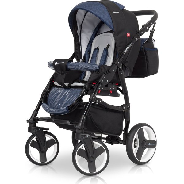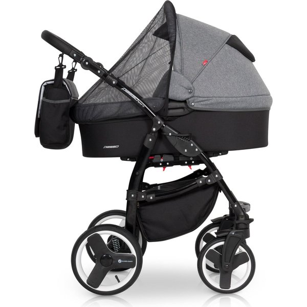 Pojemny, zamykany kosz na zakupy znajdujący się pod siedziskiem pomieści wszystkie potrzebne artykuły lub niewielkie zakupy. Do wózka dołączone zostały dodatki, takie jak: pokrowiec na nóżki, praktyczna torba, folia przeciwdeszczowa do gondoli i spacerówki oraz moskitiera.