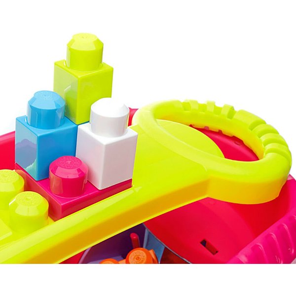 Dodatkowo atrakcją jest wózek z rączką, dziecko może załadować do niego wszystkie klocki i ciągnąć bądź pchać przed sobą! Zbieracz klocków będzie prawdziwą frajdą dla malucha! Zabawa z klockami to ćwiczenia zdolności manualnych, rozwój wyobraźni oraz nauka kreatywnego myślenia.