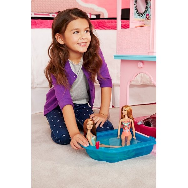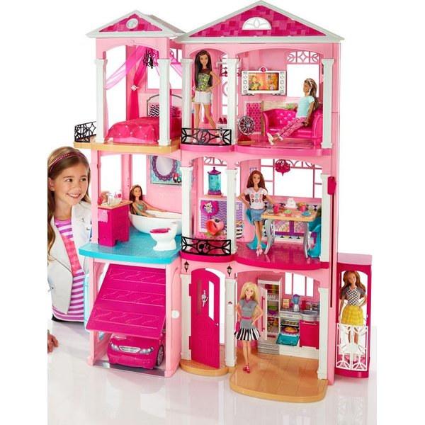 Każda mała miłośniczka Barbie marzy o domku dla swojej ulubionej lalki. Domek skrywa w sobie wiele niespodzianek! Składa się trzech poziomów, wielu pomieszczeń takich jak: garaż, pokoje, windę, kuchnię i łazienkę. Domek posiada strefę relaksu.