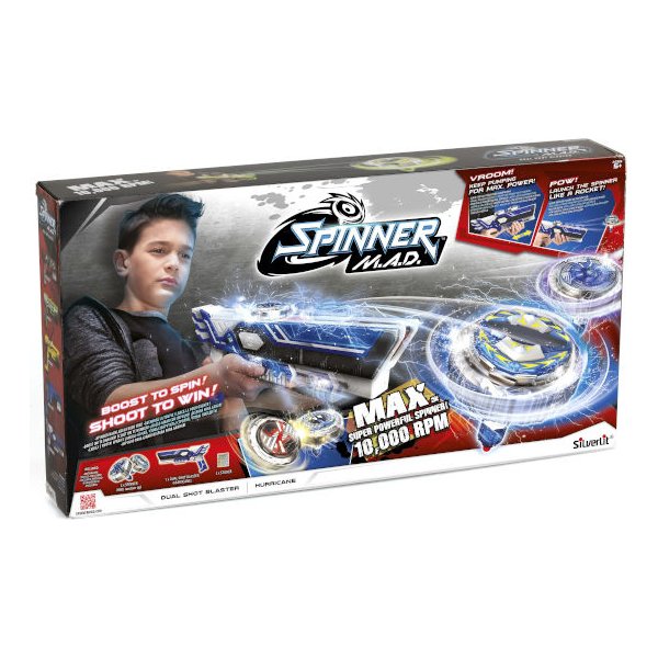 Dual Shot Blaster od Silverlit dostarczy podwójnych emocji! Idealny dla dzieci, które uwielbiają rywalizację! Dodatkowych wrażeń dodaje fakt, że nigdy nie wiadomo kto zwycięży w rozgrywce! Co należy zrobić? Wystarczy sprawić, aby spinner jak najdłużej został w ruchu. Jednak to od Ciebie nas zależy jakiej siły użyjesz! Nie daj się rywalowi i pokonaj go! Świecące spinnery dodadzą magii całej zabawie.