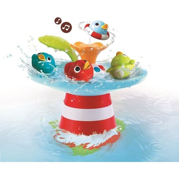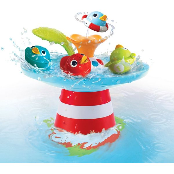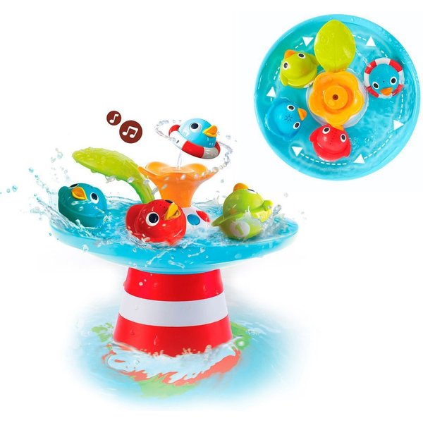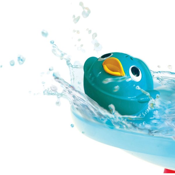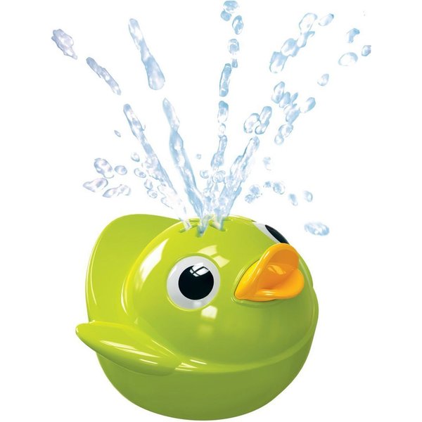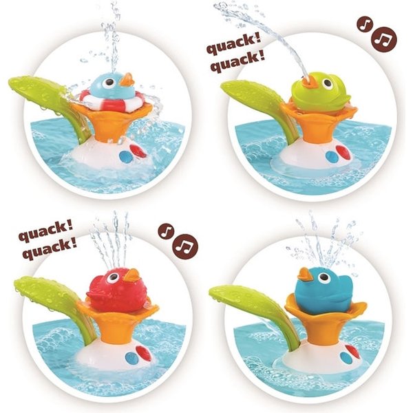Specjalny mechanizm działający na baterię będzie pompować wodę z wanny, która później zacznie wypływać z fontanny. By zabawa stała się jeszcze ciekawsza, maluch może postawić na szczyt jedną z czterech kaczuszek - każda z nich tryska wodą w inny sposób tworząc niesamowite wodne pokazy!