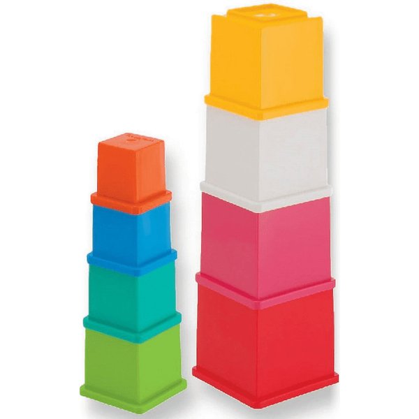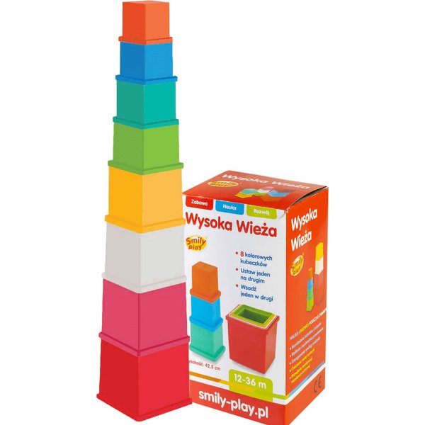 Wysoka wieża od Smily Play to zestaw 8 kolorowych kubeczków, które pozwolą maluszkowi przyswoić nazwy kolorów. Na spodzie kubeczków znajdują się również literki, a same kubeczki mogą służyć również do nauki liczenia. Jednak budowanie z nich wieży to nie jedyna funkcja jaką spełniają. Można je również wykorzystać do piaskownicy. Zabawka pozwoli na trenowanie zdolności motorycznych i logicznego myślenia.