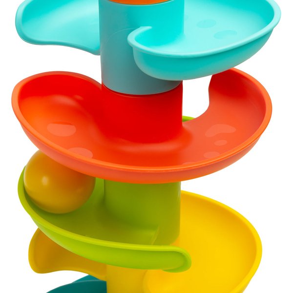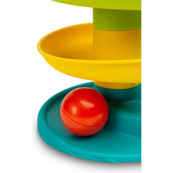 - 5 poziomów wieży i 3 piłki wypełnione grzechoczącymi kuleczkami