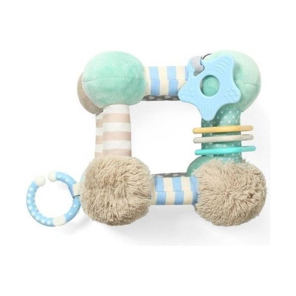 Ten niezwykły sześcian i kostka od Baby Ono to niezwykli trenerzy motoryki i zmysłów u malucha. Pozwolą ćwiczyć chwyt, przeciąganie elementów z jednego końca do drugiego, przekładanie z ręki do ręki. Różne faktury będą pobudzały zmysł dotyku. Posiadają one również gryzaki, które będą bardzo pomocne zwłaszcza podczas okresu ząbkowania. Przyniosą ukojenie dla bolących dziąsełek. Są zaprojektowane tak, aby dziecko nie miało problemu z chwyceniem jej i utrzymaniem w rękach. Potrząsając nimi, zaczną wydawać dźwięki. Są bardzo miłe w dotyku. Z pewnością zachwycą małe dziecko!