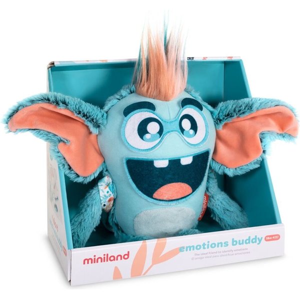 Zabawka edukacyjna Stworek Poznaj swoje emocje marki Miniland to znakomita pomoc dla maluszka, który uczy się rozpoznawać różne emocjonalne stany.
