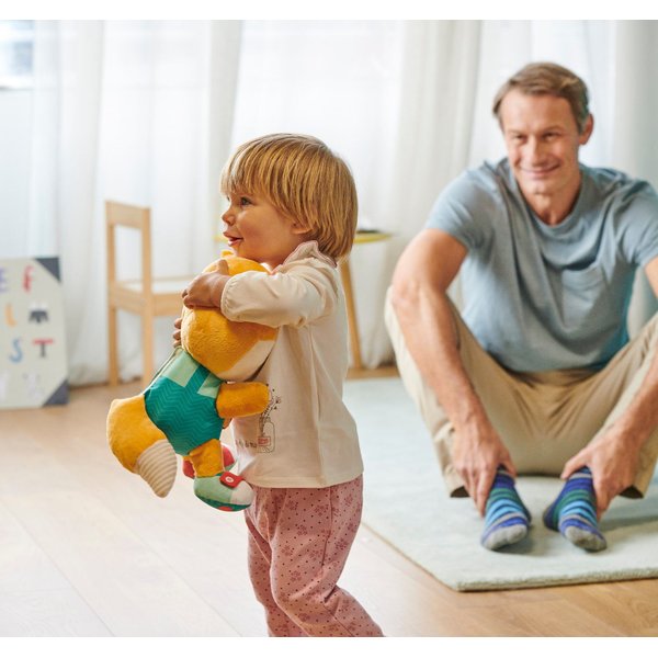 Starszaki (od 2. roku życia) mogą poćwiczyć sprawność manualną, wkładając liskowi rękawiczkę, zapinać buciki i guziczek na brzuszku. To doskonała zachęta dla Twojej pociechy do samodzielności podczas ubierania się. Te aktywności zostały opracowane z udziałem metody Montessori.