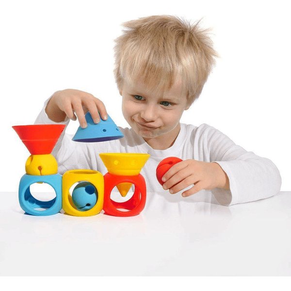 Wszystkie elementy wykonane są z silikonu spożywczego, który jest bezpieczny dla maluszka. Cały zestaw pozwala ćwiczyć zdolności motoryczne oraz koordynację. Zapewni on wiele godzin wspaniałej zabawy, a ograniczać nas będzie tylko wyobraźnia.