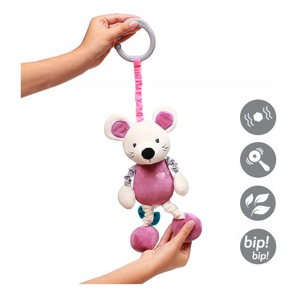 Myszka Sybil to słodka i urocza zawiesza, która stanie się najlepszym przyjacielem malucha. Wykonana została w 100% z bezpiecznych materiałów. Miękka maskotka ma piszczące i szeleszczące nóżki, w środku znajduje się grzechotka. Podczas zabawy maskotką dziecko ma możliwość rozwijać swoje umiejętności poznawcze, kształtować motorykę i umiejętności manualne.