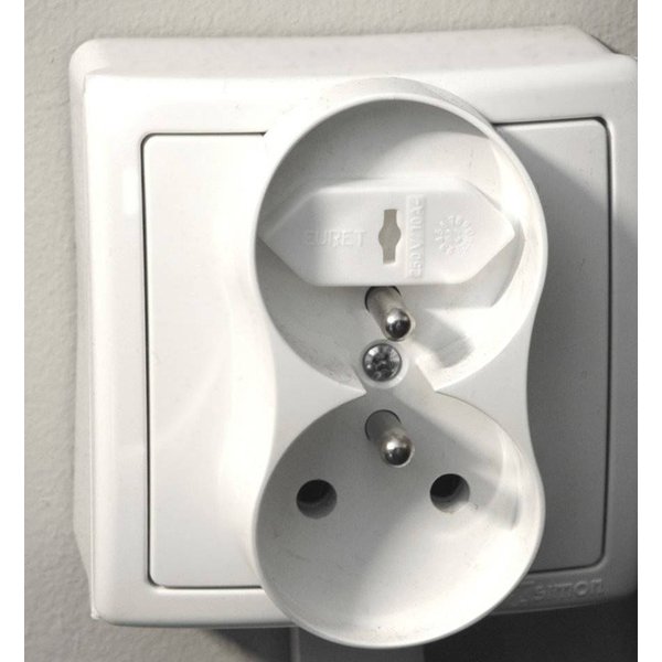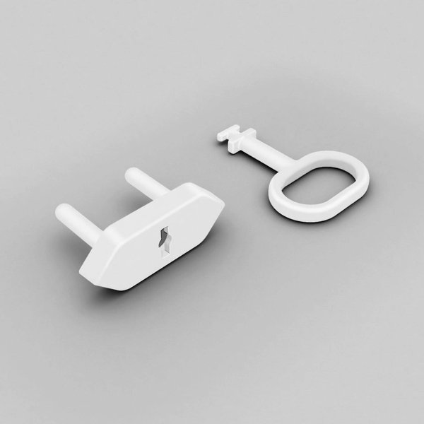 Ten model pasuje do gniazdek z uziemieniem i bez uziemienia (bolca). W komplecie jest także klucz do usunięcia zabezpieczeń, kiedy nie będą już potrzebne. Znakomicie zapobiega porażeniom prądem spowodowanym wkładaniem palców lub różnych przedmiotów do otworów gniazdka. Montaż zabezpieczeń jest bardzo łatwy i nie wymaga przyklejania ani wiercenia otworów.