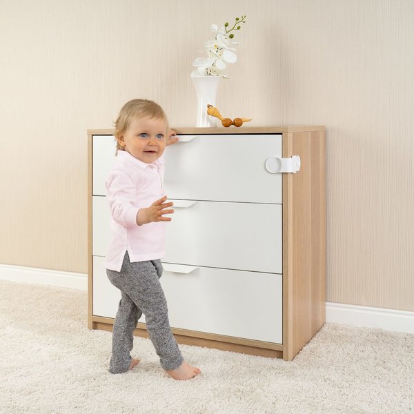 Dziecko właśnie zaczyna wędrówki po mieszkaniu, a Ty drżysz o jego bezpieczeństwo? Zabezpieczenie kątowe pozwoli uchroni maluszka przed nieprzyjemnymi wypadkami podczas zwiedzania wszystkich zakamarków przez maluszka. Żadne zakazane rzeczy nie trafią do małych rączek. Uchroni nie tylko szuflady, ale również szafkę, lodówkę czy kuchenkę mikrofalową. Nadaje się do powierzchni ze stali, drewna, drewna lakierowanego oraz mebli laminowanych. Są samoprzylepne, więc nie trzeba używać do jego montażu wiertarki.