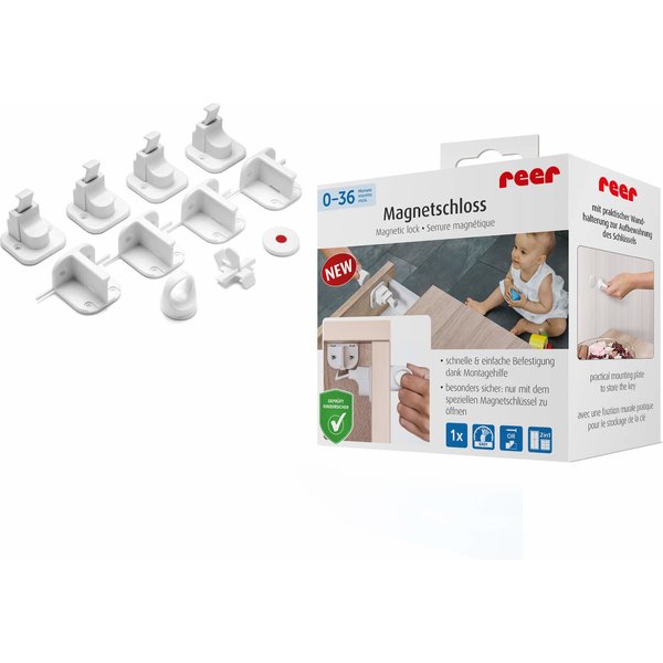 Zamek magnetyczny Reer został zaprojektowany w taki sposób, aby dziecko nie potrafiło otworzyć zamka. Jest ono możliwe jedynie za pomocą magnetycznego klucza dołączonego do zestawu. Zabezpieczenie bardzo łatwo się montuje za pomocą dołączonego szablonu. Możemy zrobić to na 2 sposoby: przykleić lub przykręcić. Nadaje się do montażu do szafek o frontach grubości do ok. 3cm.