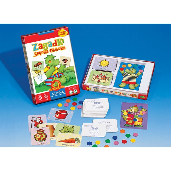Gra zawiera 135 kart, na których po jednej stronie znajdują się rymowane zagadki, a po drugiej kolorowe ilustracje-odpowiedzi. W nagrodę za prawidłowo rozwiązaną zagadkę dzieci otrzymują żeton.