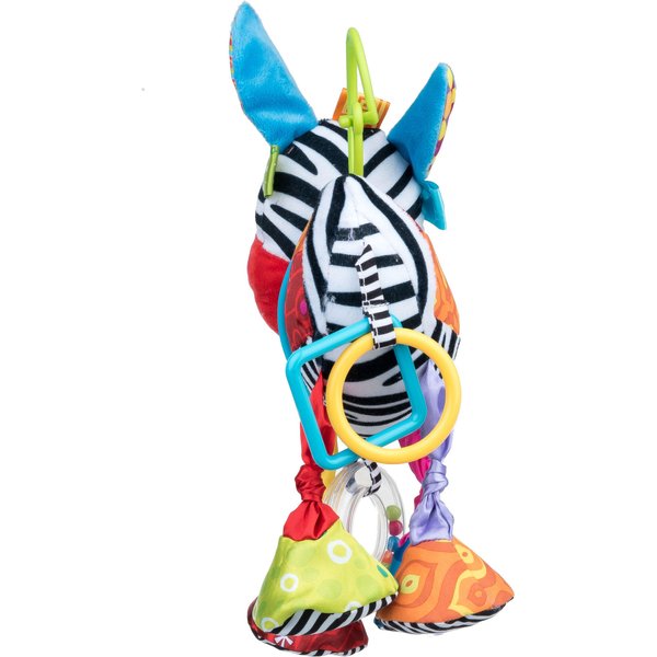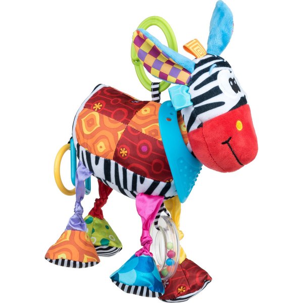 Uroczy osiołek Dave stanie się najlepszym przyjacielem twojego maluszka! Pluszak posiada mnóstwo atrakcji, które zachęcą maluszka do zabawy: plastikowe kółeczka do pociągania i gryzienia, grzechotkę z kolorowymi kuleczkami i chustkę z wypustkami. Mnogość wzorów i różnorodnych faktur będzie rozwijać zmysł dotyku oraz wzroku dziecka.