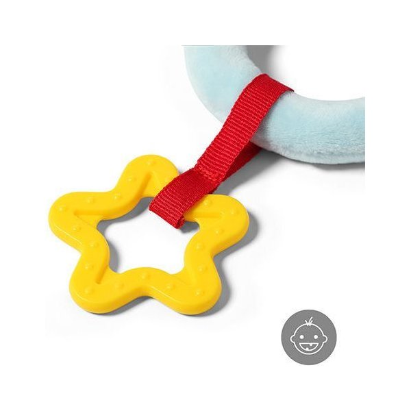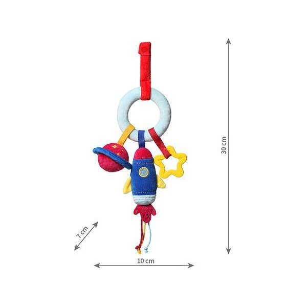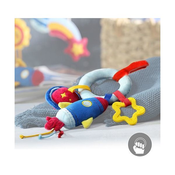 Model ten jest inspirowany kosmosem i tak jak on jest pełen niespodzianek, które już czekają na odkrycie przez Twojego maluszka. Cudownie miękki materiał, budząca zainteresowanie kolorystyka i elementy oddziałujące na słuch maluszka (grzechotka, piszczek i szeleścik) pozytywnie wpływa na zmysły maluszka oraz jego zdolności umysłowe. Dziecko ćwiczy małą motorykę, prawidłowy chwyt, rozumienie związków przyczynowo - skutkowych oraz ma możliwość ukoić ból towarzyszący ząbkowaniu dzięki obecności silikonowego gryzaka.