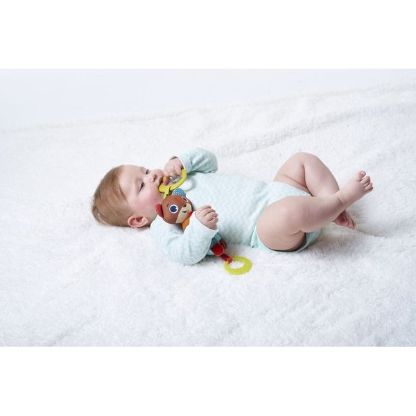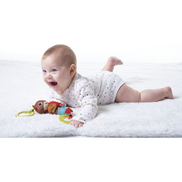 Zawieszka Tiny Smarts marki Tiny Love to zabawka, która stworzona została specjalnie dla najmłodszych. Mnogość struktur oraz kolorów wpłynie na stymulację zmysłów oraz pozwoli na rozwój ruchów precyzyjnych dziecka. Zawieszka zachęca dziecko do pracy paluszkami oraz rączkami. Można powiesić ją za pomocą klipsa do wózka, fotelika lub łóżeczka.