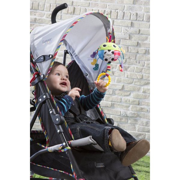 Śliczna zabawka, nieduża, ale kolorowa i ciekawa, przyciągająca uwagę. Gdy pociągnie się w dół za żółte kółeczko pajączek wydaje dźwięk i wraca do pierwotnej pozycji, jakby wciągał się po pajęczynie. Duży plus za tę niespodziankę.