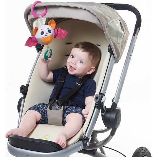 Zawieszkę Tiny Smart można powiesić za pomocą klipsa do wózka, fotelika lub łóżeczka.
