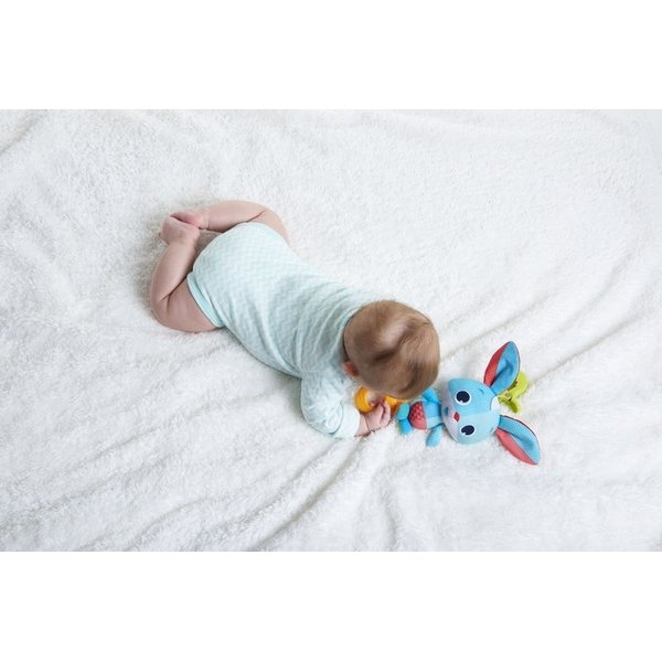 Zawieszka Tiny Smarts marki Tiny Love to zabawka, która stworzona została specjalnie dla najmłodszych. Mnogość struktur oraz kolorów wpłynie na stymulację zmysłów oraz pozwoli na rozwój ruchów precyzyjnych dziecka. Wibrujący króliczek zachęca dziecko do pracy paluszkami oraz rączkami. Zawieszkę Tiny Smart można powiesić za pomocą klipsa do wózka, fotelika lub łóżeczka.