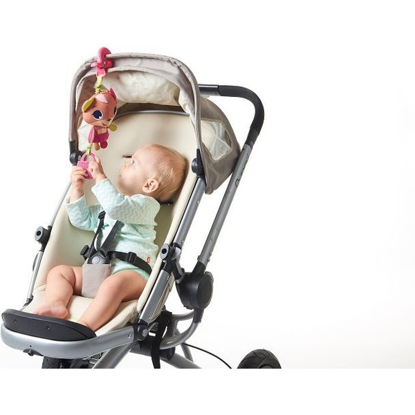Zawieszkę Tiny Smart można powiesić za pomocą klipsa do wózka, fotelika lub łóżeczka.