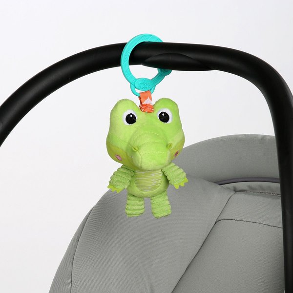 Zawieszka z delikatnymi wibracjami, które uruchamiają się po lekkim pociągnięciu zostanie wiernym towarzyszem waszych podróży lub rodzinnych spacerów. Można zawiesić ją na foteliku, pałąku czy w wózku. Pasuje również do maty edukacyjnej z wymiennymi zabawkami. Dziecko z zaciekawieniem będzie obserwowało uroczego aligatora o delikatnych barwach. Będzie rozwijało zmysł wzroku, dotyku, a próbując złapać zabawkę - zdolności motoryczne.