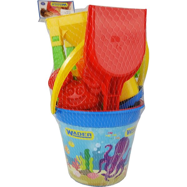 Zestaw do piasku składa się z 4 foremek, okrągłego wiaderka i innych elementów, które zagwarantują świetną zabawę. Przedmioty wykonane są przy użyciu technologii IML (In Mould Label), gdzie zastosowana grafika jest wtopiona bezpośrednio w plastik, będąc w ten sposób nieusuwalną. Całość wyprodukowana jest w Polsce, z wysokiej jakości tworzywa sztucznego, odpornego na warunki atmosferyczne, dzięki czemu zabawkę można przechowywać przez cały rok np. w ogródku czy na balkonie.