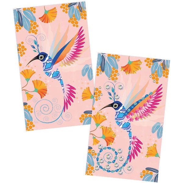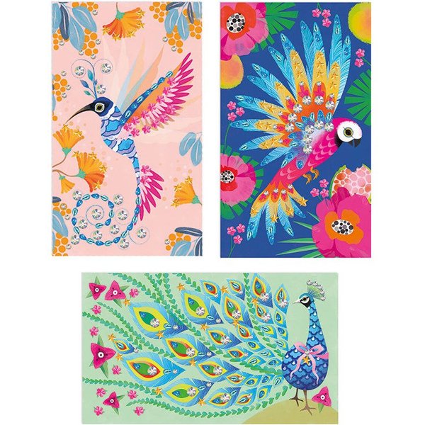 Kreatywny zestaw kryje w sobie wiele niespodzianek. Zestaw zawiera 3 plansze-obrazki z pięknymi ptakami oraz 2 arkusze błyszczących cyrkonii, którymi można pięknie zrobić zwierzęta. Wystarczy tylko pobudzić wyobraźnię. Stwórz swojego wymarzonego ptaka! Taki rodzaj zabawy pobudza wyobraźnię i kreatywność dziecka ale również wycisza i uspokaja dziecko. Całość zapakowana jest w piękne, kartonowe pudełko - idealnie nadaje się na prezent.