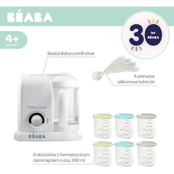 Zestaw Babycook z 6 słoiczkami i 4 łyżeczkami silikonowymi Beaba