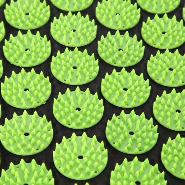 Akupresura to także sposób na usprawnienie krążenia krwi oraz pobudzenie wydzielania endorfin. Pozytywne skutki stosowania maty do akupresury odczują osoby borykające się z bólami kręgosłupa, głowy oraz cierpiący na bezsenność. Poduszka i mata posiadają łącznie niespełna 9 620 punktów masujących w postaci kolców rozmieszczonych na rozetkach. Odpowiednia gęstość rozmieszczenia rozetek sprawia, że uzyskany zostaje optymalny nacisk na ciało.