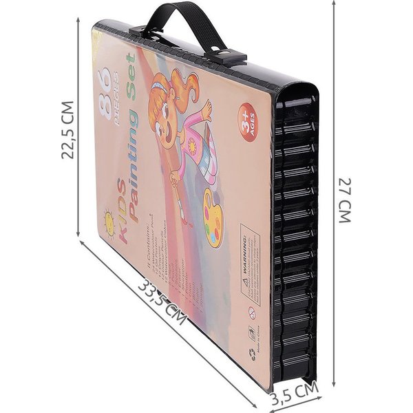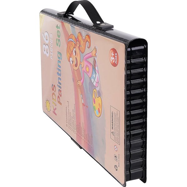 Zestaw do malowania w walizce to dobry prezent dla kreatywnych maluchów, które uwielbiają wejść do krainy kreatywności i wyobraźni by tworzyć piękne dzieła. Całość zawiera wszystko co przyda się podczas kreowania nowych prac. Wszystkie elementy zostały umieszczone w walizce, co pozwoli zachować porządek i zabierać komplet ze sobą, gdzie tylko dusza zapragnie. Gdy wykorzystamy przybory zawarte w zestawie, bez problemu wymienimy je na nowe elementy.
