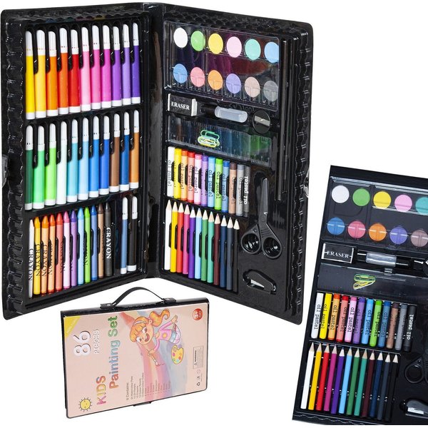 Walizeczka jest bogato wyposażona w różne przybory do malowania. Dziecko bedzie przeszczęśliwe.