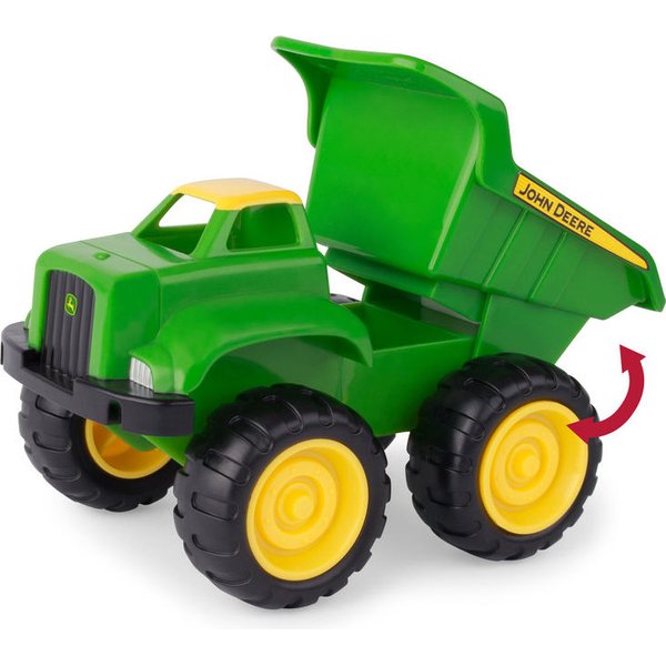 Zestaw do piaskownicy od Tomy to podstawowe narzędzie pracy małego budowlańca: zielony traktor i wywrotka John Deere przydadzą się do budowy wielu konstrukcji, nie tylko w piaskownicy.
