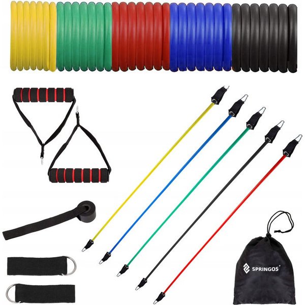 Zestaw 5 ekspanderów marki Springos umożliwia kompleksowy trening wszystkich partii mięśniowych gdziekolwiek jesteś.