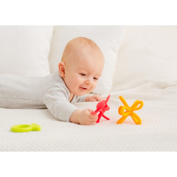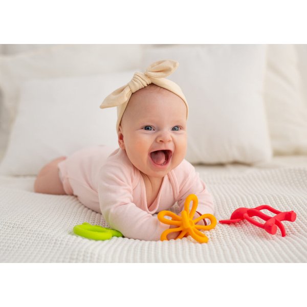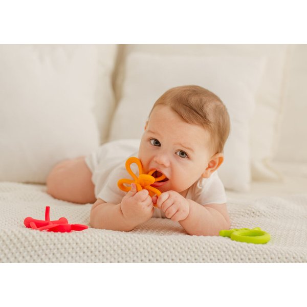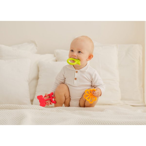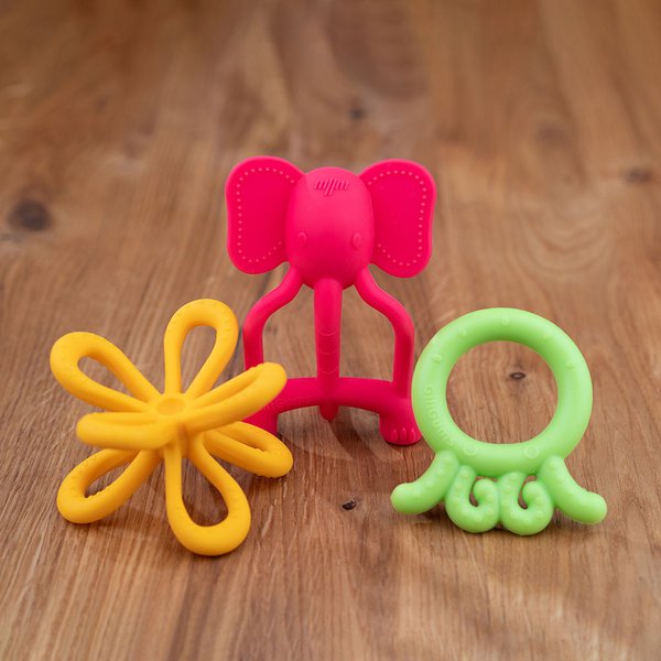 Wykonane z bezpiecznego dla dzieci silikonu gryzaki posiadają przyciągające wzrok kolory, ciekawe kształty zwierzątek, zróżnicowane faktury i wypustki. Pomogą w ukojeniu bólu towarzyszącego wielu dzieciom podczas wyrastania pierwszych ząbków, masując dziąsła i język. Gryzaki są bardzo łatwe w czyszczeniu, a ich wielkość dostosowana do małych rączek niemowląt.