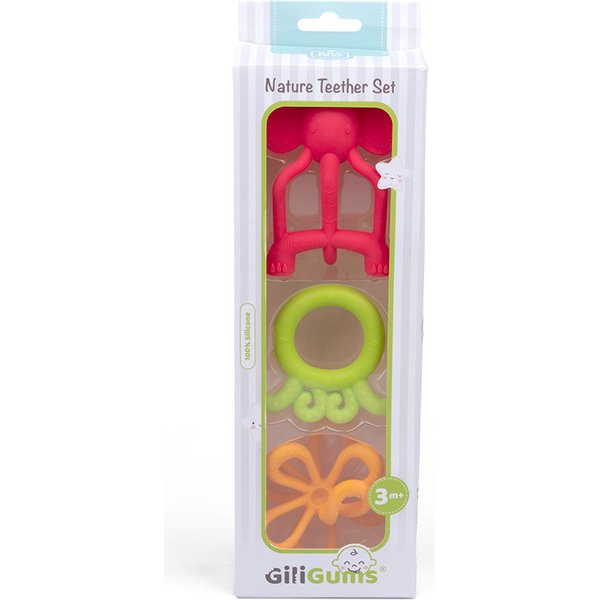 Zestaw gryzaków silikonowych Natura od Giligums to pierwsza pomoc w czasie ząbkowania dla Twojego maluszka.