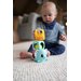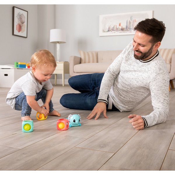 Łatwe do złapania klocki posiadają w sobie grzechoczące kulki. Można je układać jeden na drugim, wykorzystując słonika jako podstawę na kółkach. Każdy z nich ma zróżnicowane faktury, co pozytywnie wpływa na zmysł dotyku Twojej pociechy. Przyjemna dla oka, ale wciąż wyrazista kolorystyka przyciąga wzrok maluszka, pomagając w nauce rozróżniania kolorów.