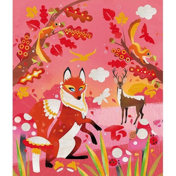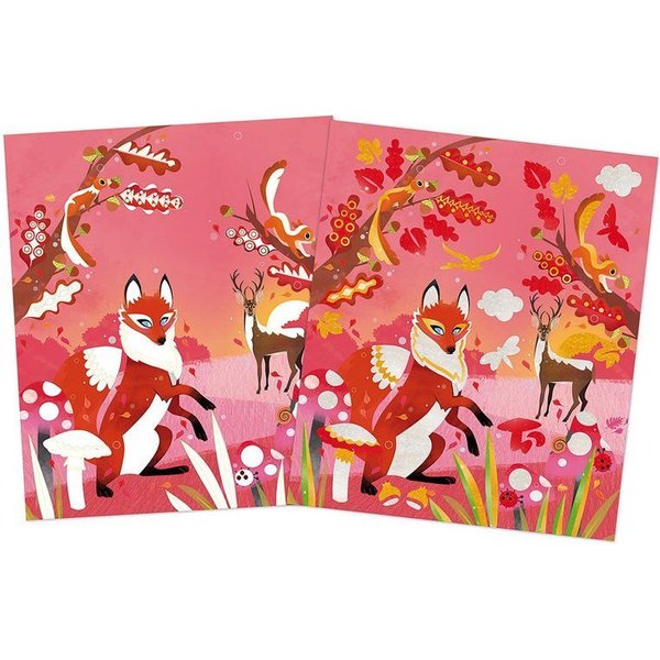 Zestaw kreatywny Perłowe plakatówki 4 pory roku od Janod, który z pewnością spodoba się dzieciom uwielbiającym prace manualne i kreatywne zabawy. W zestawie znajdują się 4 plansze, które przedstawiają krajobraz charakterystyczny dla danej pory roku. Tak oto dziecko będzie miało do dyspozycji wiosenny staw, letnią plażę, jesienny las liściasty, zimową choinkę. Oprócz obrazków maluch będzie miał do dyspozycji farbki z połyskiem, którymi będzie mógł nadać barw swoim ilustracjom. Wybrać będzie mogło z pięciu kolorów: srebrny, złoty, czerwony, zielony i niebieski. Zestaw wyposażony został również w pędzelek oraz szablon z mniejszymi lub większymi wzorkami, którymi będzie mógł ozdobić pracę.
