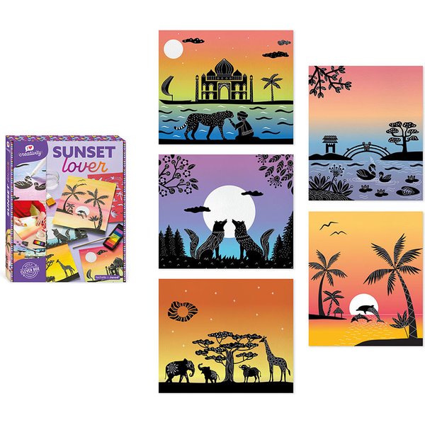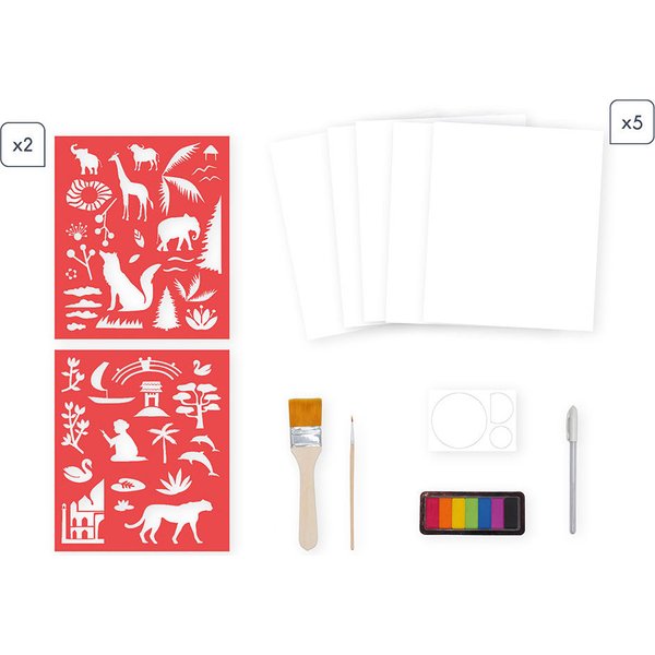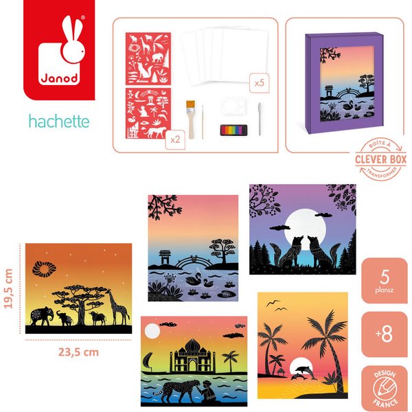 Zestaw kreatywny Malowanie z szablonami akwarele Zachody słońca I love creativity Janod