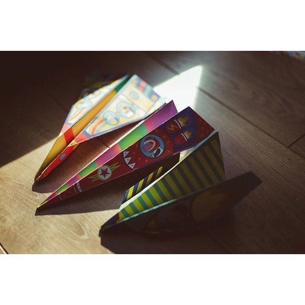 Zestaw kreatywny Papierowe samoloty od Janod składa się z 20 barwnych arkuszy z wyraźnie zaznaczonymi liniami składania, które ułatwią tworzenie modeli samolotów. Każdy z arkuszy posiada bajeczny, kolorowy wzór, co doda im uroku. Samoloty posiadają również swoich pasażerów takich jak pieski czy króliczki. Oprócz samych arkuszy do złożenia modeli, maluch ma również do dyspozycji wyrzutnie samolotów oraz gumkę, które pomogą wystrzelić samoloty w powietrze.