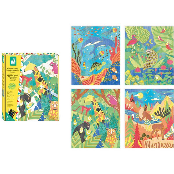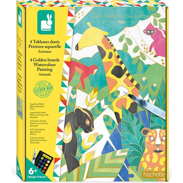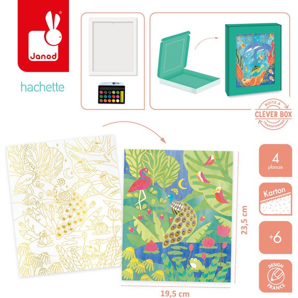 Zestaw kreatywny Złote kontury Zwierzęta Janod to wspaniała zabawa dla każdego małego artysty. Francuski producent Janod zaprojektował zestaw składający się z 4 plansz - obrazków z pięknymi złotymi konturami zwierząt. Dzięki dołączonemu pędzelkowi ze zbiornikiem wody i palecie farb, dziecko może precyzyjnie wypełnić przestrzenie farbami, a kontury zapobiegają mieszaniu się kolorów. W zestawie znajduje się również gąbeczka do pochłaniania nadmiaru wody. Gotowe obrazki to idealna dekoracja dziecięcego pokoju. Zestaw rozwija umiejętności manualne i kreatywność dziecka, pobudza wyobraźnię i umiejętność budowania i projektowania. To doskonały pomysł na prezent dla małego twórcy.
