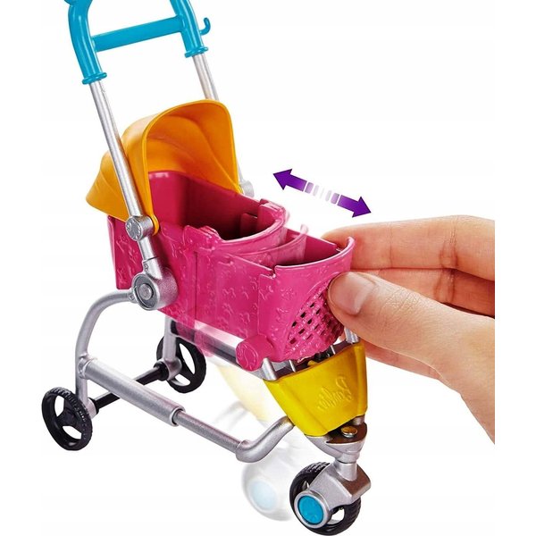 Zestaw Barbie od Mattel stworzony dla miłośniczek lalek i zwierząt! Teraz możesz zabrać swoje szczeniaczki na spacer! Wolisz spacerówkę czy torbę? Barbie posiada wygodne ubranie w sam raz na długie spacery. Wygodna sukienka w paski i różowe buciki nie będą krępowały jej ruchów. Pieski nakarmimy dzięki dwóm miskom i kostkom, a następnie pobawimy się przy pomocy frisbee. Spacerówka posiada daszek, który da szczeniaczkom trochę cienia.