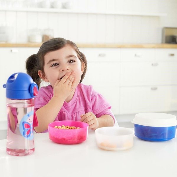Zestaw misek od Skip Hop, które z pewnością przydadzą się w dziecięcej wyprawce. Urocze zwierzątko i delikatne kolory zachęcą maluszka do spróbowania posiłku. Posiadają one antypoślizgowy spód, który zapobiegnie przesuwaniu się ich po powierzchni. Komplet składa się z 3 miseczek oraz pokrywki pasującej do największej z nich. To pozwoli zapakować przekąskę na spacer czy drugie śniadanie do szkoły.