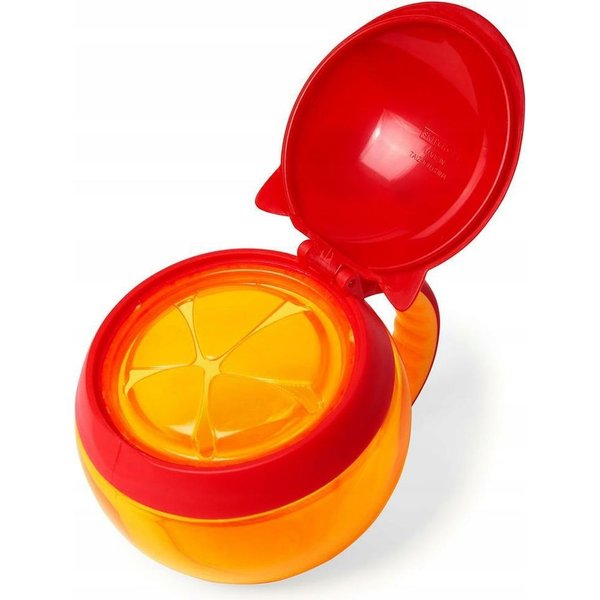 Przydatny pojemnik na przekąski, doskonały do wykorzystania zarówno w domku, ja i na spacerze, czy podczas podróży samochodem. Pojemniczek ma miękką przykrywkę umożliwiającą małym rączkom dostęp do środka oraz łatwy do trzymania uchwyt. Gdy pojemniczek przewrócimy do góry nogami, przekąski pozostają w środku. Antypoślizgowe uchwyty ułatwiają trzymanie i przenoszenie przez dziecko. Sprawdzi się przy podawaniu różnych przekąsek, chrupek, owoców i warzyw.